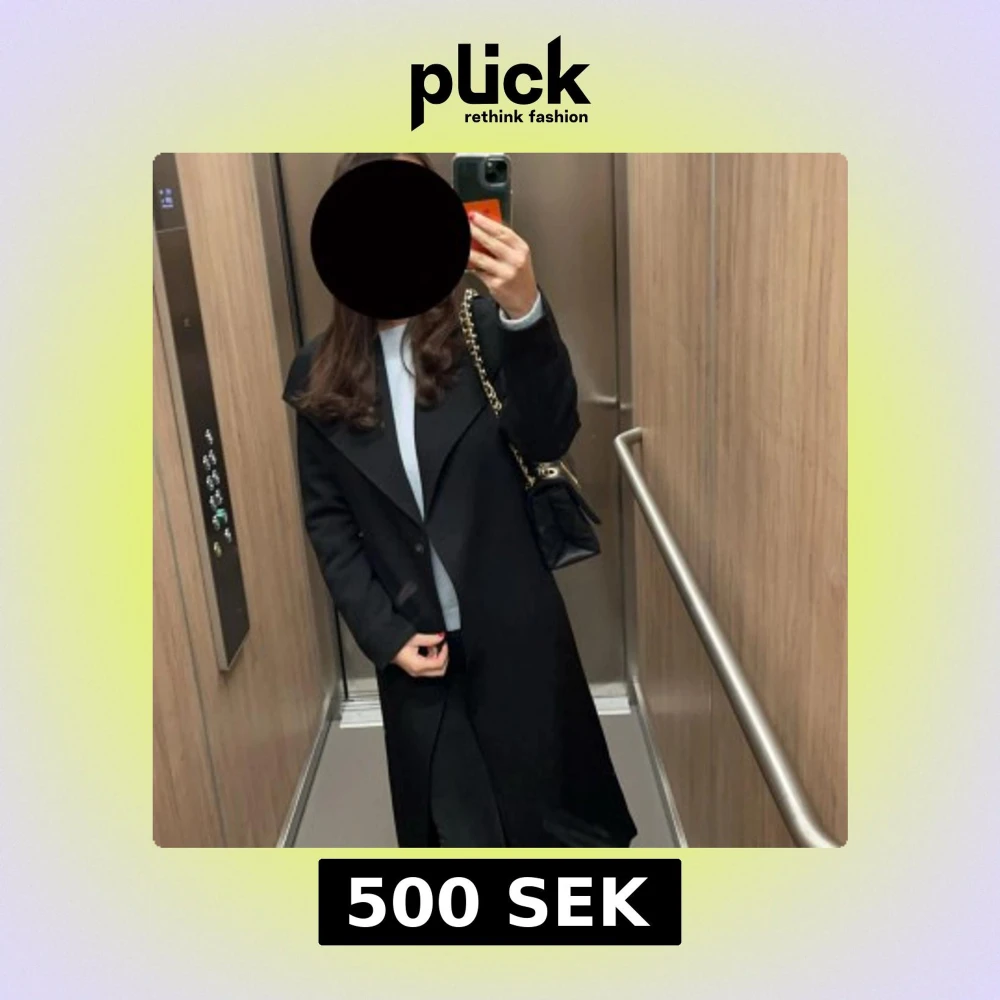 Säljer en svart, stilren och lång kappa med bred krage och knappstängning framtill. Perfekt för dig som gillar minimalistisk och klassisk look. Kappan har lång ärm och rak passform, vilket gör den enkel att matcha med olika outfits.