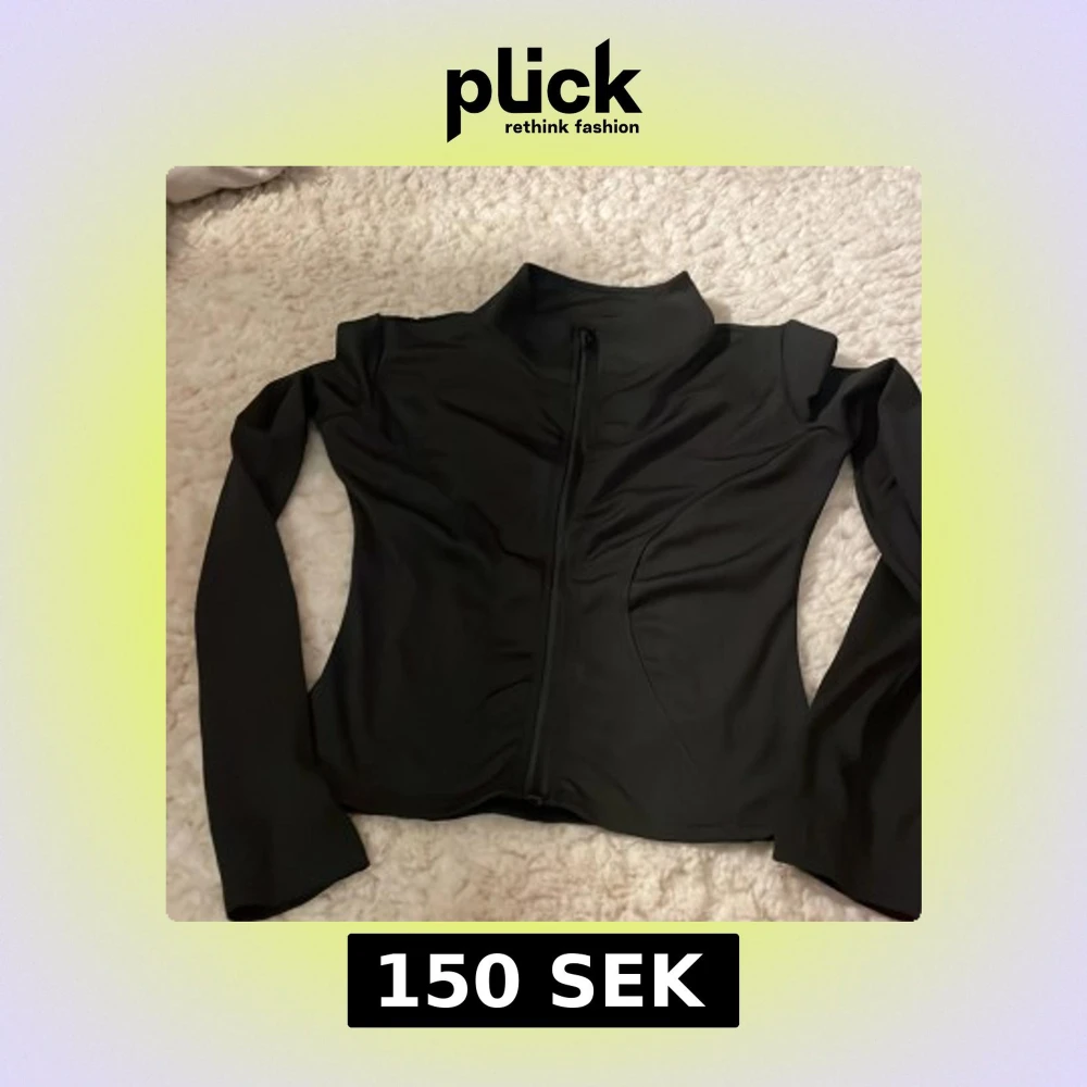 Snygg svart jacka med dragkedja framtill. Jackan har en tight passform och långa ärmar, perfekt för en stilren look. Den är tillverkad i ett syntetmaterial som ger en modern känsla.