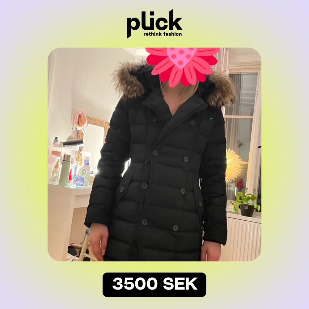 Säljer en snygg svart dunjacka från Hollies i mycket bra skick. Jackan har en fluffig päls på huvan och knappar framtill. Perfekt för kalla vinterdagar! Den är långärmad och har en figursydd passform som håller dig varm och stilren. Pris går att diskutera 🩷