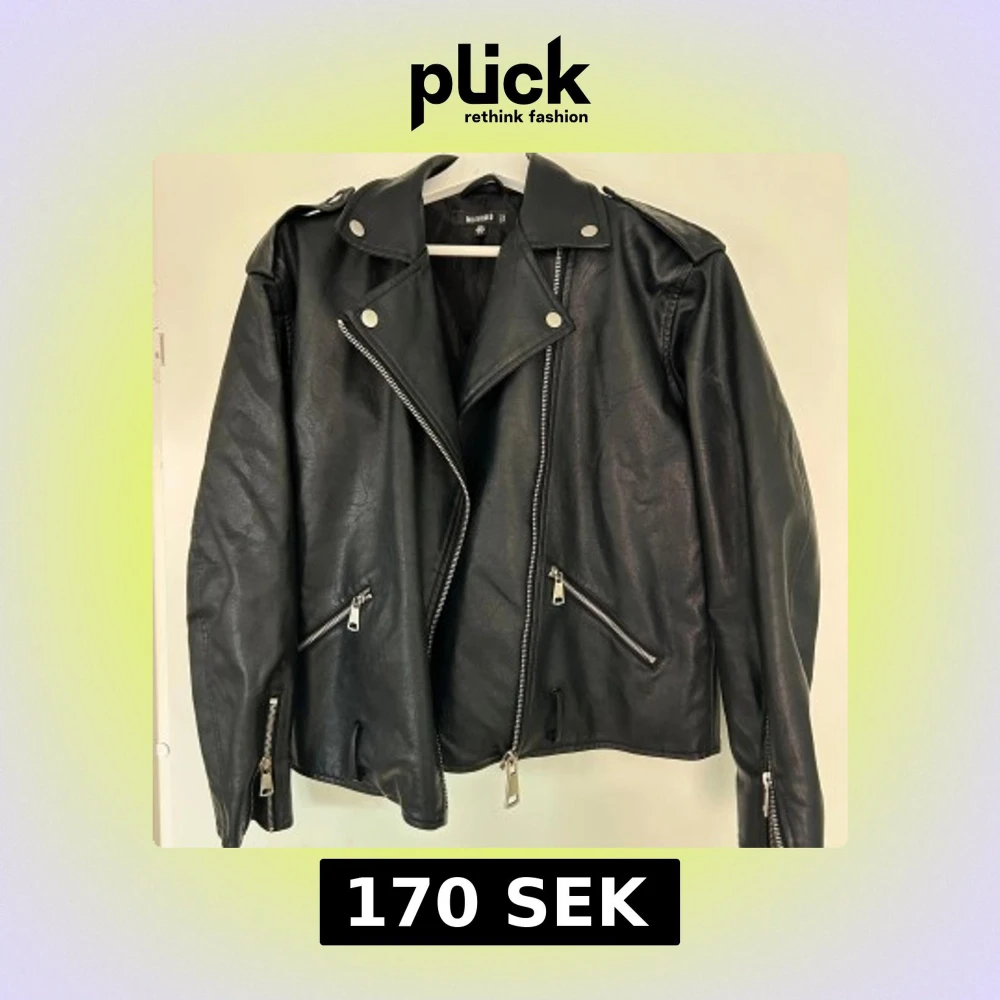 Säljer denna snygga svarta skinnjacka från Missguided. Den är använd några gånger men är i bra skick! Jackan är normal i storleken.