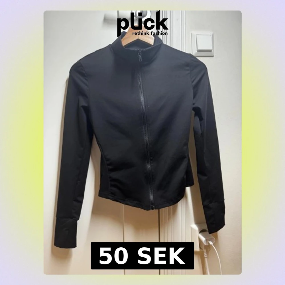 Snygg svart träningsjacka med slim passform och hel dragkedja framtill. Jackan har långärmade ärmar med tumhål vid mudden för extra komfort. Materialet är slätt och syntetiskt, perfekt för dig som gillar stilrena och sportiga plagg.