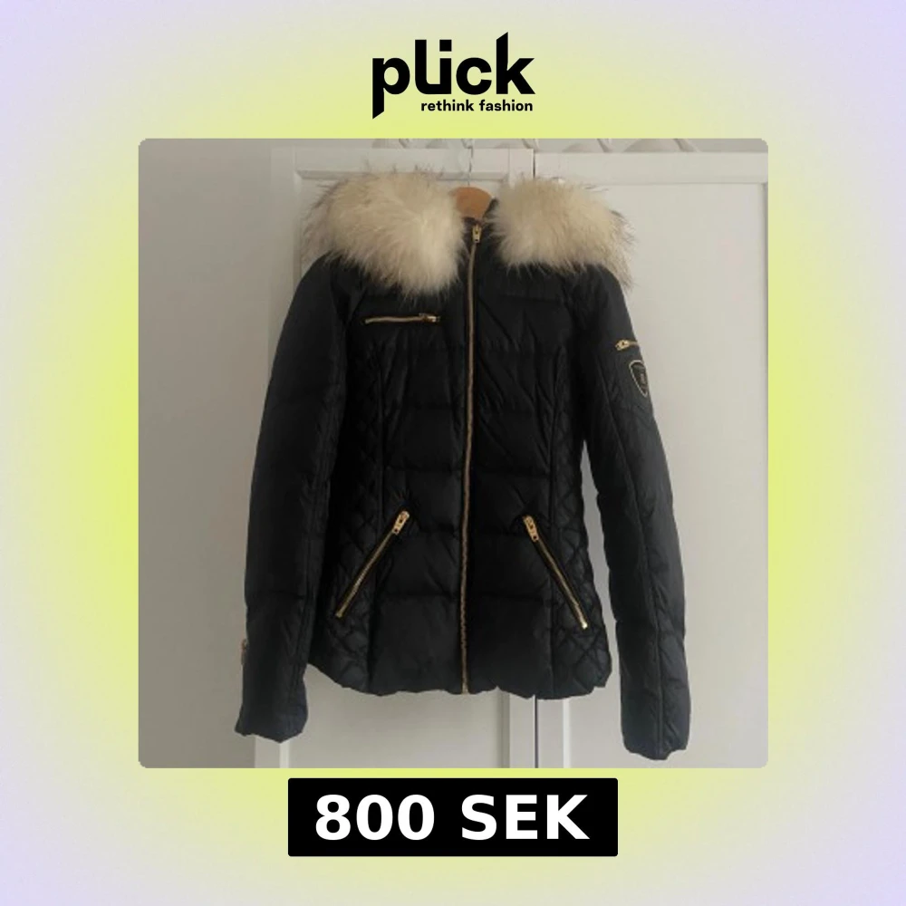Snygg svart dunjacka i modell ”rita” från Rockandblue. Avtagbar luva och avtagbar pälskrage. Äkta päls (tvättbjörn) Jackan är figursydd och har guldiga dragkedjor. Perfekt för kalla dagar. Använd en vinter, pälsen är väl omtagen.