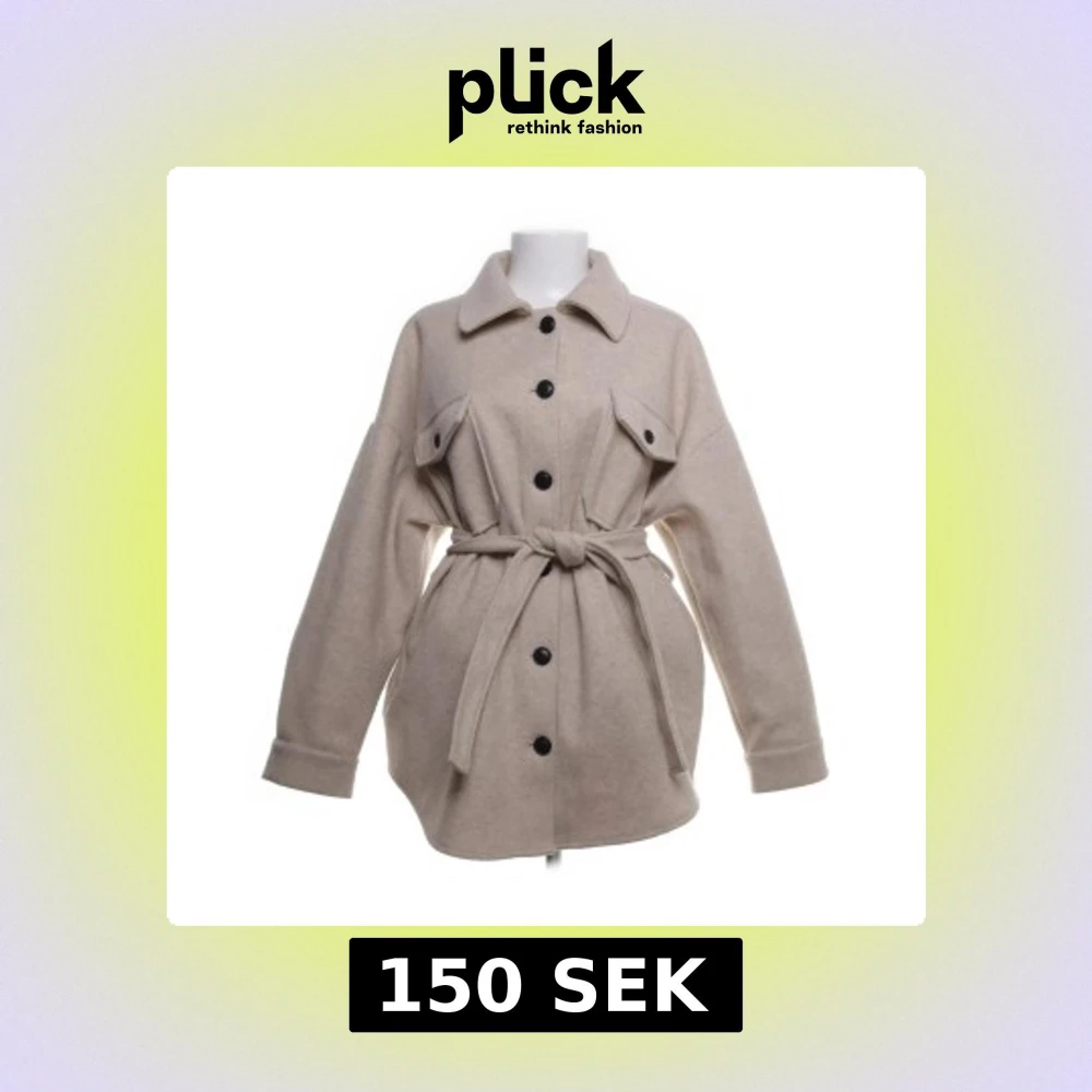 Stilren beige jacka/ overshirt med svarta knappar och knytskärp i midjan. Jackan har två bröstfickor med lock och lång ärm. Perfekt för lager-på-lager och enkel att styla till olika outfits.