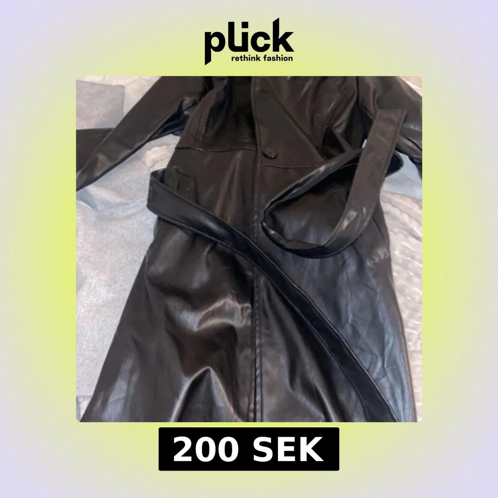 Snygg svart skinnrock med bälte för en stilren look. Rocken har långa ärmar och knappar framtill. Perfekt för att hålla stilen i kallare väder.