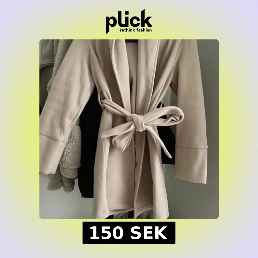 Säljer en stilren beige kappa med bälte i midjan och långa ärmar. Jackan har en klassisk krage och är enkel att matcha till olika outfits. Perfekt för dig som gillar en tidlös look.