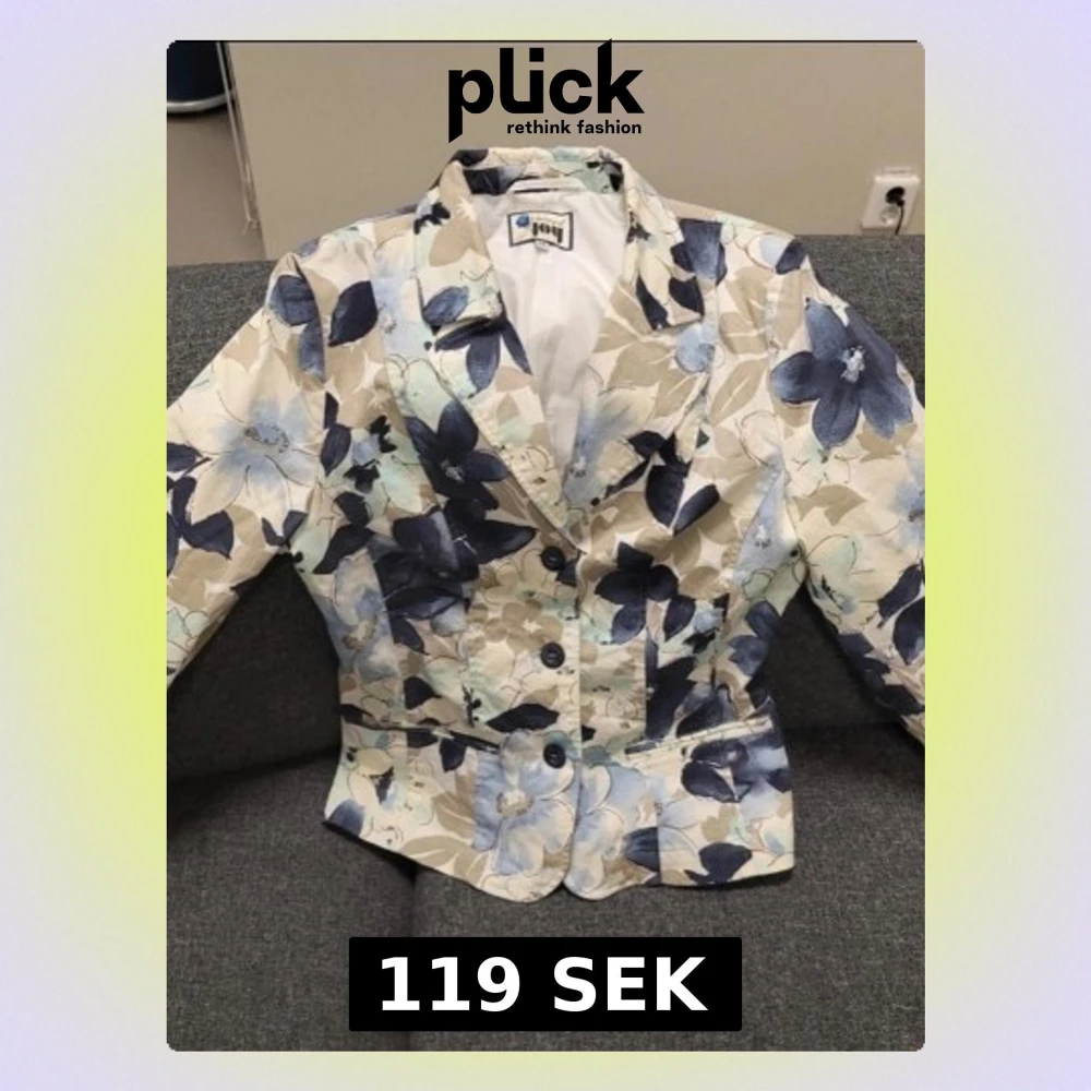 Snygg kavaj från Joy i storlek 34 med blommigt mönster i blått, beige och vitt. Kavajen har klassisk krage, knappar framtill och figurnära passform. Materialet är mjuk bomull som känns skönt mot huden. Perfekt för dig som gillar färg och mönster.