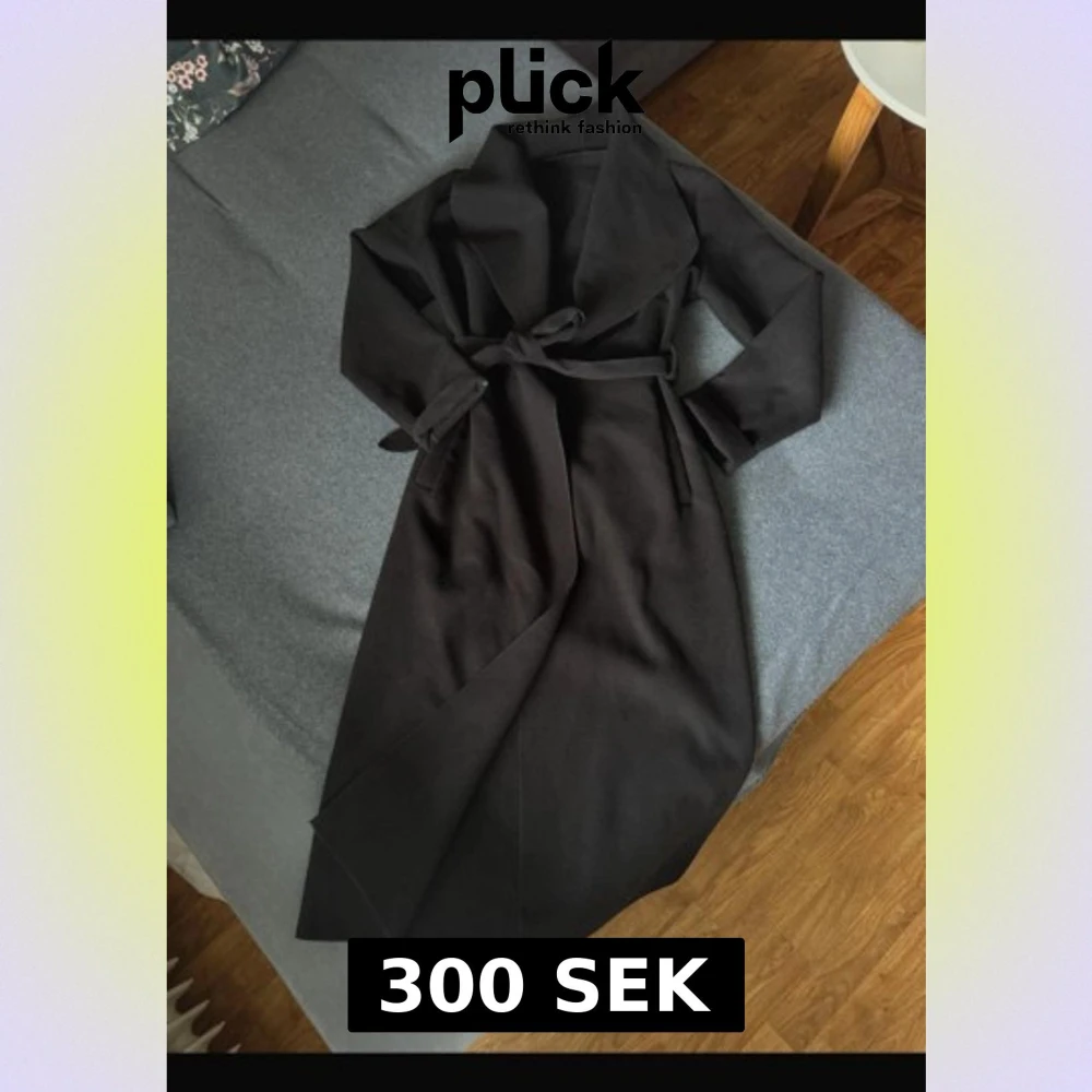 Snygg svart kappa med bred krage och knytbälte i midjan. Lång modell med raka ärmar och stilren look, perfekt för dig som gillar minimalistisk stil. Materialet känns mjukt och har en matt finish. Passar dig som vill ha en klassisk vibe i garderoben.