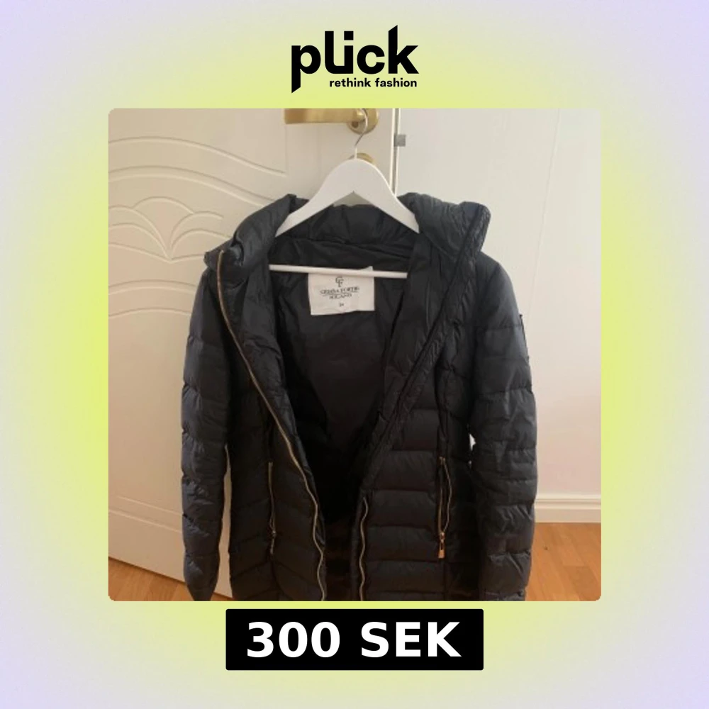 Svart pufferjacka från Chiara Forti Milano med huva och guldiga dragkedjor. Jackan är quiltad och har två fickor framtill med dragkedja. Perfekt för kalla dagar och har en snygg, enkel design som funkar till det mesta. Storlek 34, pris 300🩷