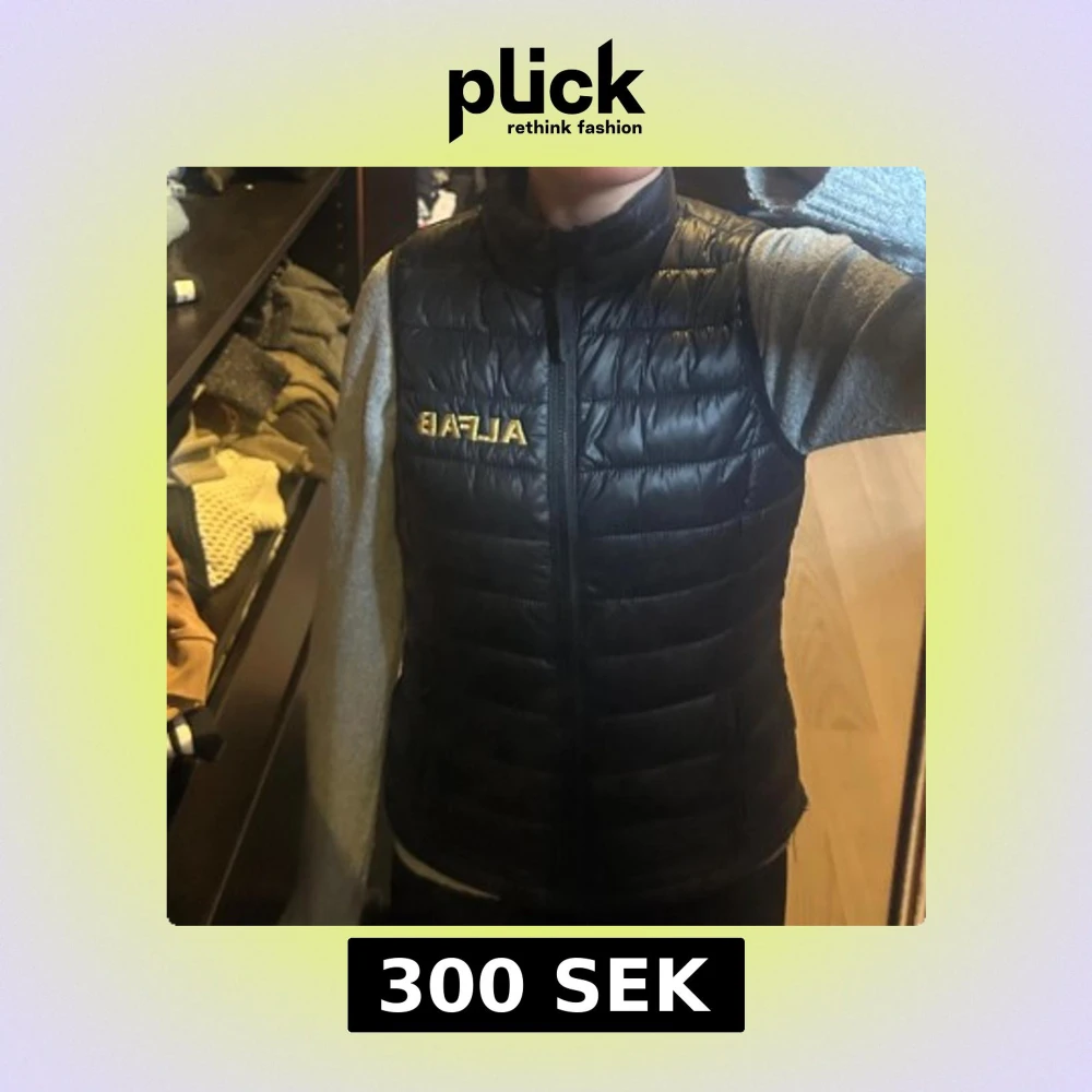 Snygg svart dunväst från Alfab med dragkedja framtill. Perfekt för lager-på-lager under kyligare dagar. Västen har en stilren design med ett märke på bröstet och ett stort på ryggen