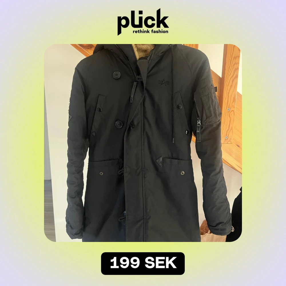 Säljer en svart Alpha Industires jacka med foder och huva (fejkpälsen finns). Jackan har långa ärmar och stängs med både dragkedja och knappar. Perfekt för kalla vinterdagar. Den har praktiska fickor och en stilren design❤️