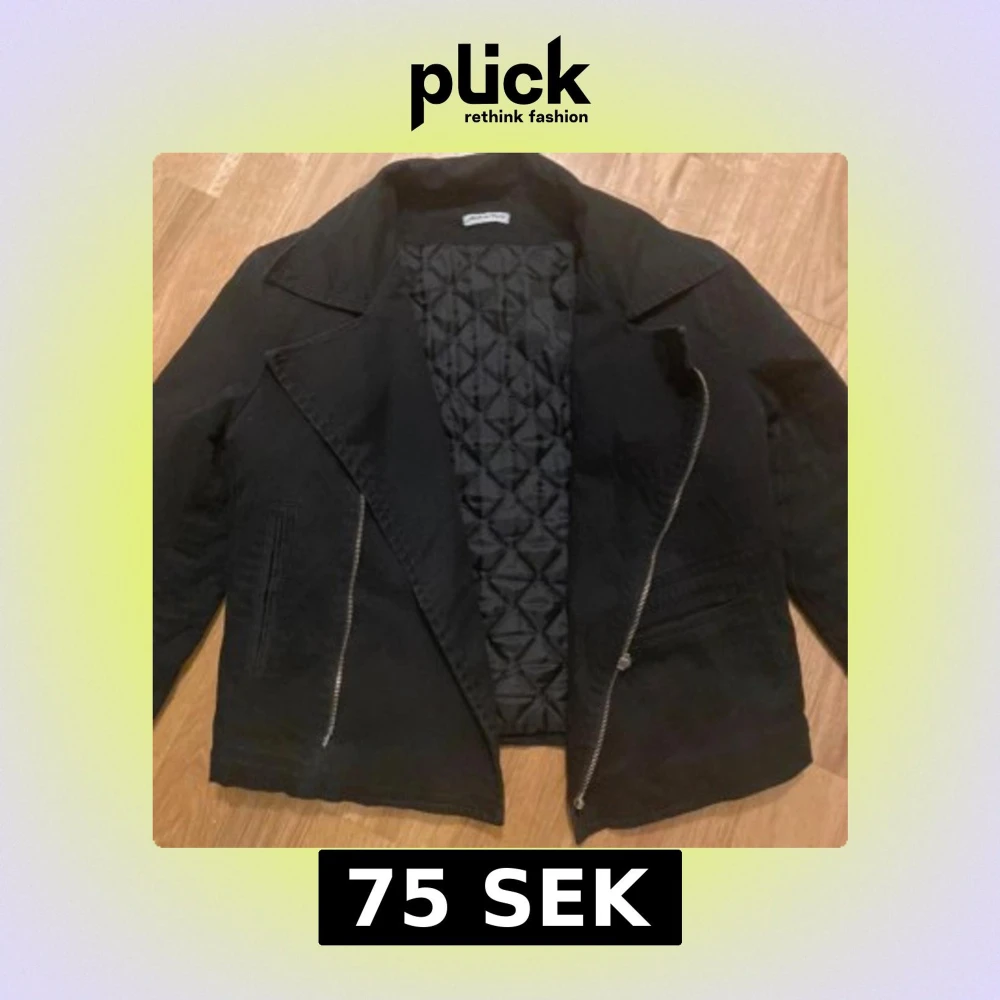 Snygg svart bikerjacka från Italien med quiltat innerfoder med dragkedja. Strl xs alltså 34