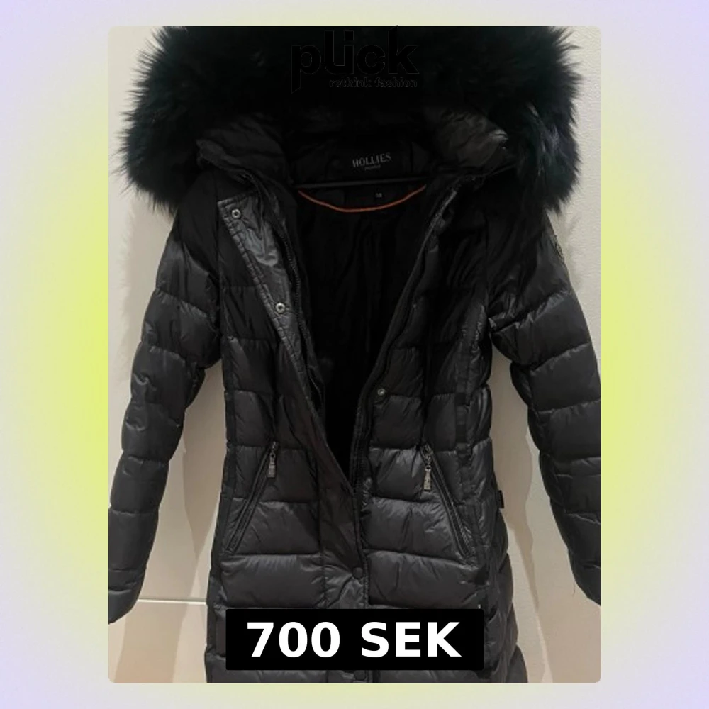 Snygg svart dunjacka från Hollies med lång passform och stor fluffig huva. Jackan har quiltad design, dragkedjor framtill och två fickor med dragkedja. Perfekt för kalla dagar och ger en riktigt stilren look.