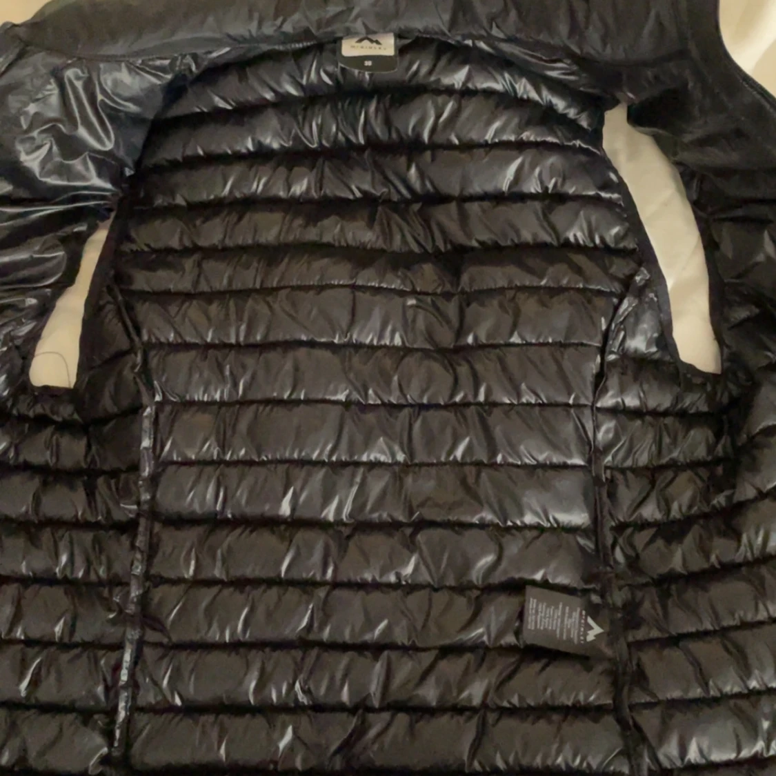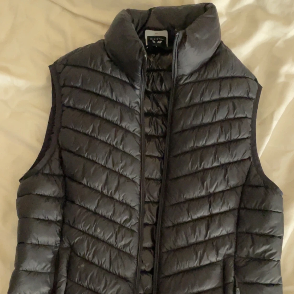 Snygg svart dunväst från McKinley i storlek 36. Västen har quiltad design, hög krage och dragkedja framtill. Perfekt för lager-på-lager och outdoor-vibes. Materialet är glansigt och lätt, vilket gör den smidig att bära och packa ner.
