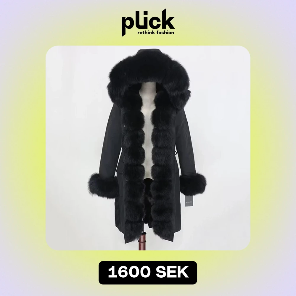Säljer en elegant svart pälsjacka med fluffig pälsdetalj längs kanterna och runt huvan. Jackan har långa ärmar med päls vid ärmsluten, perfekt för kalla vinterdagar. Den är både stilren och varm, idealisk för att hålla sig chic under vintern. Jag skulle säga att jackan passar dig som vanligtvis har mellan XS-M i storlek. Pris går att diskuteras vid snabb och smidig affär! 💞