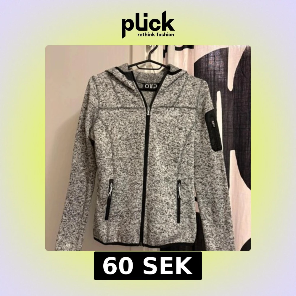Gråmelerad fleecetröja från OTP med huva och svarta detaljer. Jackan har hel dragkedja framtill, två fickor med dragkedja och en extra ficka med dragkedja på ärmen. Perfekt för chill dagar eller när du vill vara bekväm men ändå se fräsch ut. Köpte från Stadium i storlek s