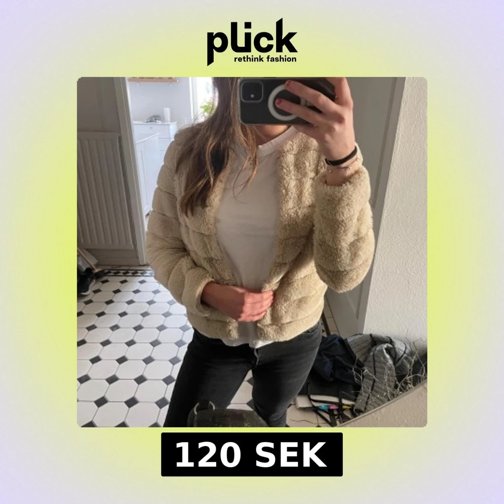 Säljer en beige, kort pälsjacka med lång ärm. Jackan har en fluffig och mjuk känsla och är perfekt för dig som vill ha en trendig look. Passar snyggt till både jeans och klänning.