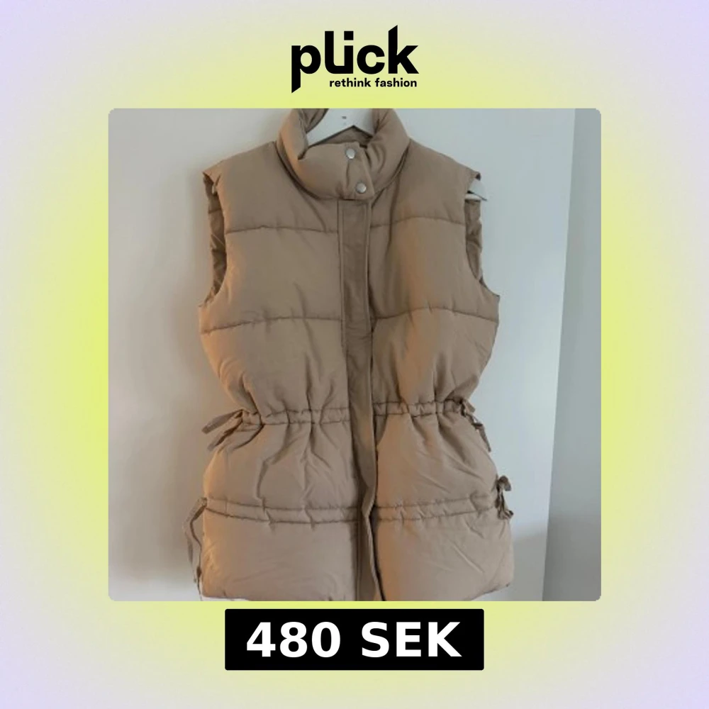 Superskön och fluffig (!!!) pufferväst med snörning på båda sidor för att markera midjan. Ståkrage och ”dold” dragkedja. Varm och skön. Är i vanliga fall XS/ S men skulle säga att den även kan passa M. Har aldrig använts!! 😍 (Sista två bilderna visar den rättvisa färgen).