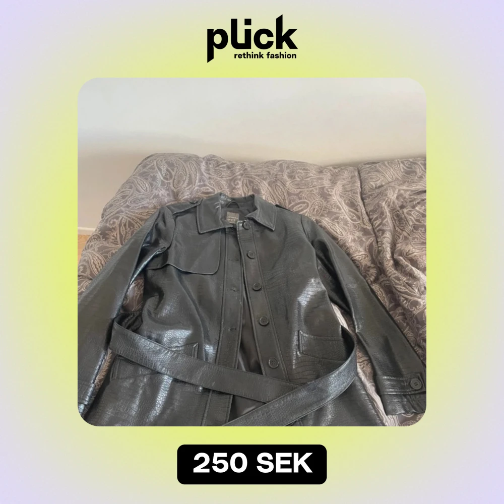 Säljer en snygg svart skinnjacka från Primark i storlek UK 8. Jackan har en cool krokodilpräglad yta och kommer med ett bälte i midjan för en perfekt passform. Den har långa ärmar och knappar framtill. Perfekt för höst och vår!