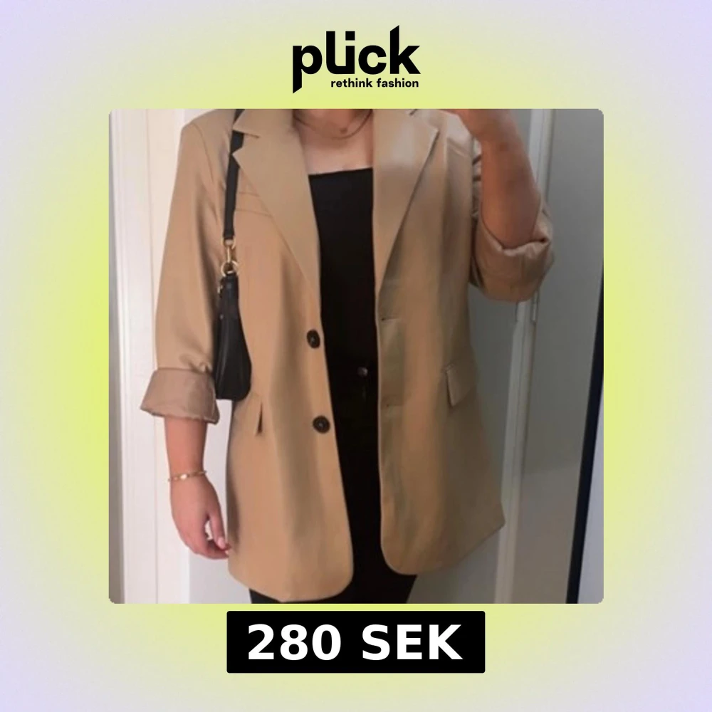 En beige kavaj med bruna knappar, materialet är skinn och passformen är oversize!