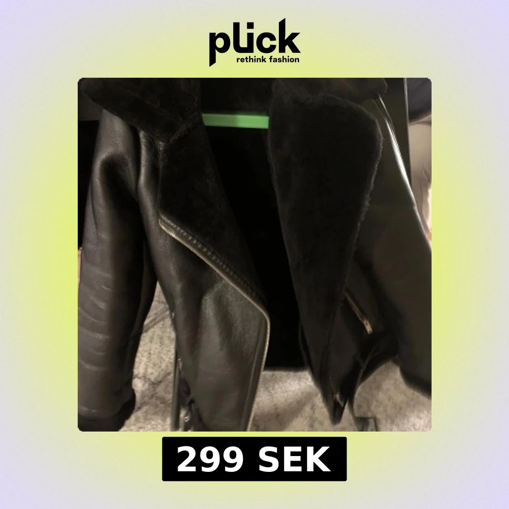 Säljer en svart teddyjacka med stora slag och dragkedjor. Utsidan är i skinnimitation och insidan är fodrad med mjuk teddy. Jackan har en cool, oversized look och passar perfekt när du vill ha en edgy stil.