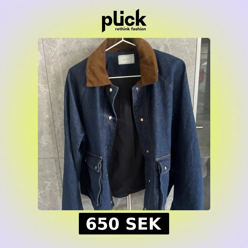 Snygg jeansjacka från Neo Noir i mörkblå denim med kontrasterande brun krage i manchester. Storlek 36, aldrig använd endast testad. Nypris 1200kr, mitt pris 650kr.