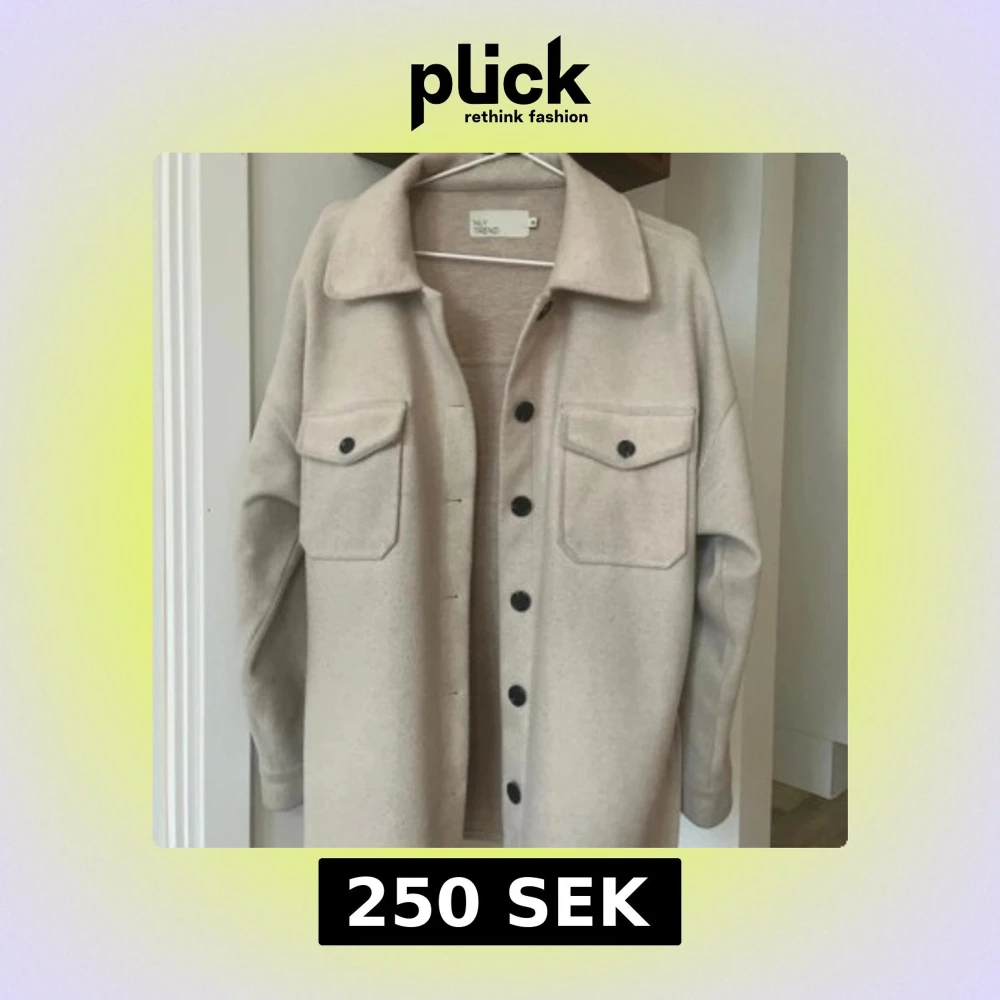 Snygg beige overshirt från NLY Trend med stora bröstfickor, svarta knappar och bälte i midjan. Jackan har klassisk krage och lång ärm, perfekt för lager-på-lager. Materialet är mjukt och känns som ullblandning. Enkel att styla till jeans eller kjol.