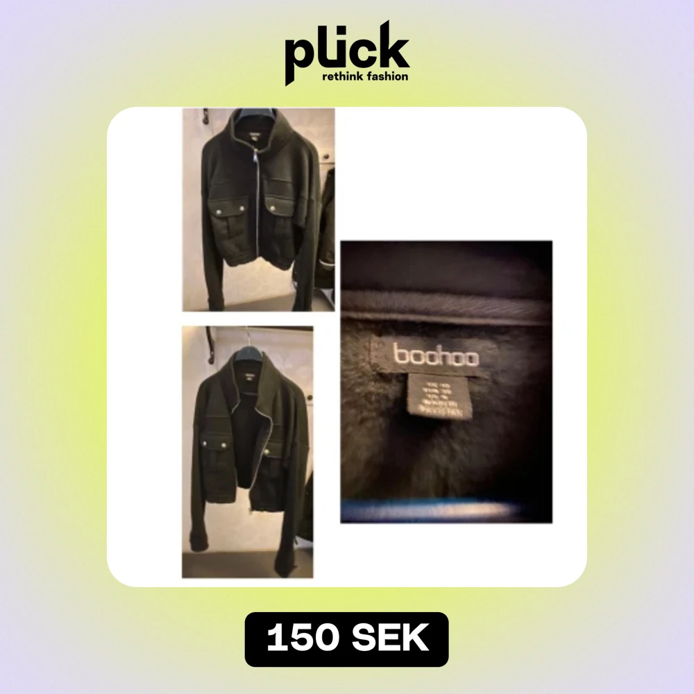 En fin college-jacka str36 . Aldrig använd. Köpt från boohoo. Fickor finns både små sidfickor och knappfickor. Kort modell