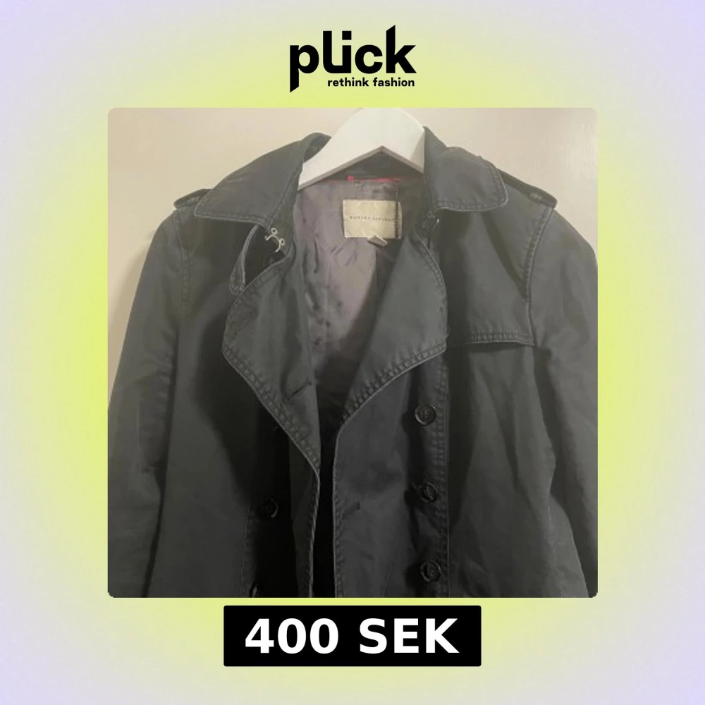 Snygg svart trenchcoat från Banana Republic med knappar framtill och klassisk krage. Jackan har långa ärmar och ett stilrent snitt som passar perfekt för höst och vår. Perfekt för att ge en elegant touch till din outfit.