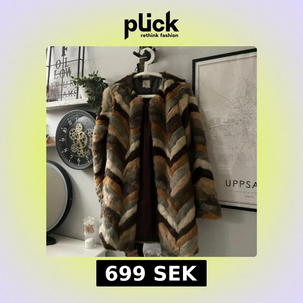 Flerfärgad pälsjacka