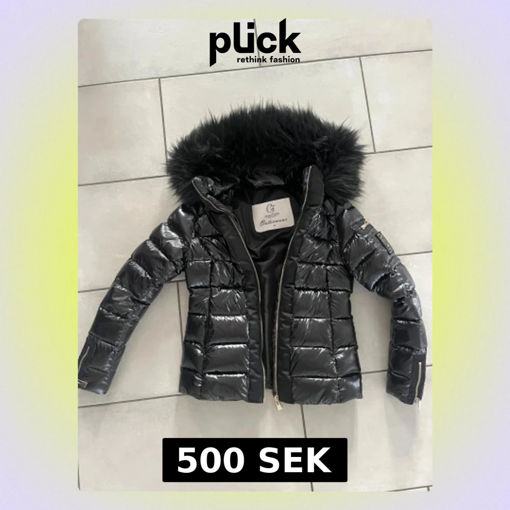 Snygg svart pufferjacka från Chiara Forthi med glansig finish, guldiga dragkedjor och stor fluffig huva med päls. Perfekt för kalla dagar när du vill vara både varm och stilren. Jackan är i ett väldigt fint skick och endast använd ett fåtal gånger.