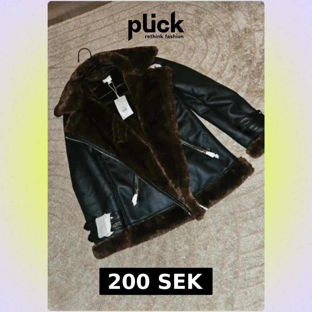 Snygg svart skinnjacka med brun fuskpäls på krage, insida och ärmslut. Jackan har dragkedjor i silver, snedstängning och coola spänndetaljer vid ärmslut. Perfekt för dig som vill ha en edgy look med extra värme.