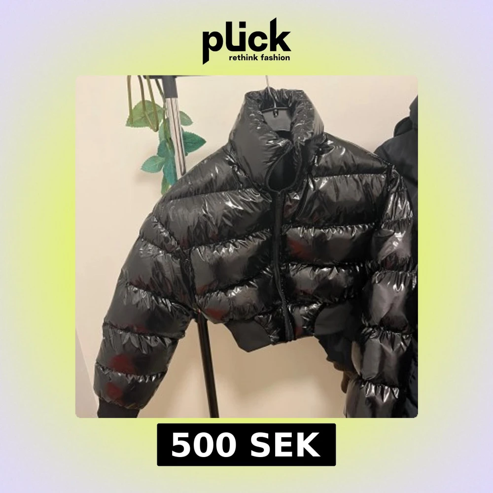 Snygg svart pufferjacka med hög krage och dragkedja. Perfekt för kyliga dagar med sin quiltade design som håller värmen. Jackan har en croppad passform som ger en modern look.