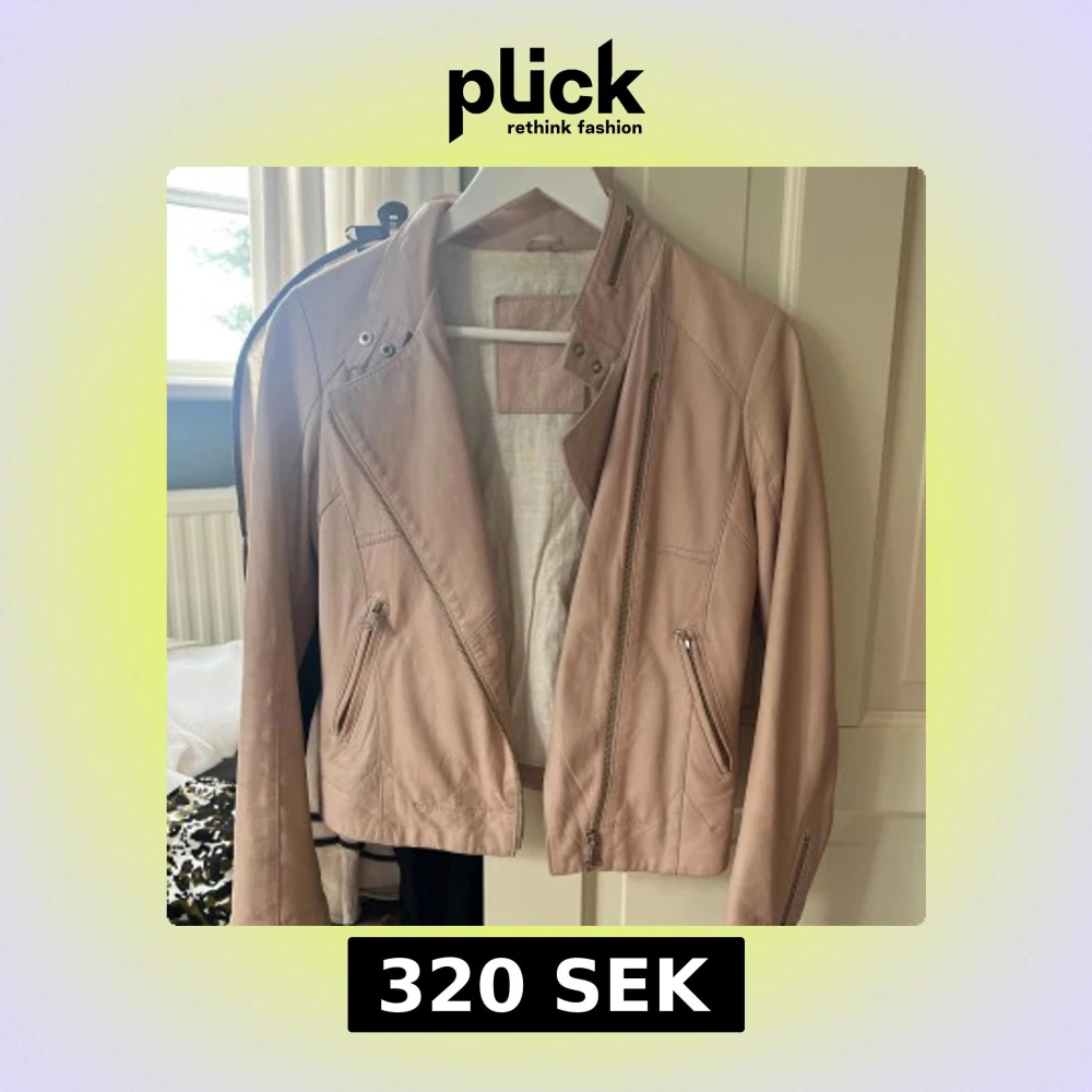 Ljusrosa skinnjacka med dragkedjor