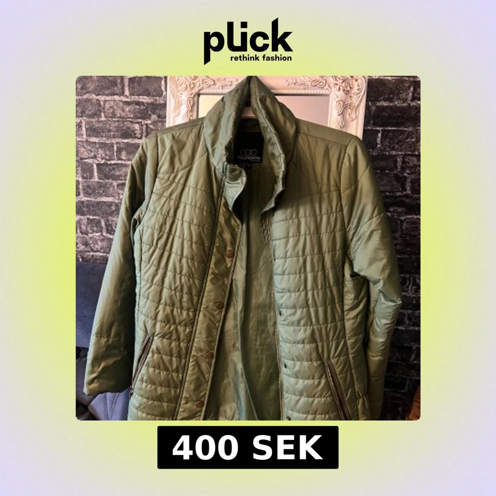 Snygg olivgrön quiltad jacka från Truenorth med dragkedja och tryckknappar framtill. Jackan har ståkrage, långa ärmar och två fickor med dragkedja. Perfekt för kyliga dagar och har en stilren, sportig look.