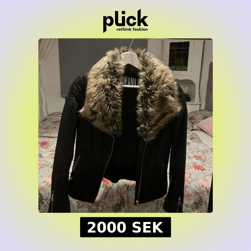 Snygg svart skinnjacka från Jofama med en lyxig fuskpäls på kragen. Jackan har dragkedja framtill och på ärmsluten, Skinnet och pälsen är äkta! Använt 3-4 gånger. Jackan säljs inte mer!