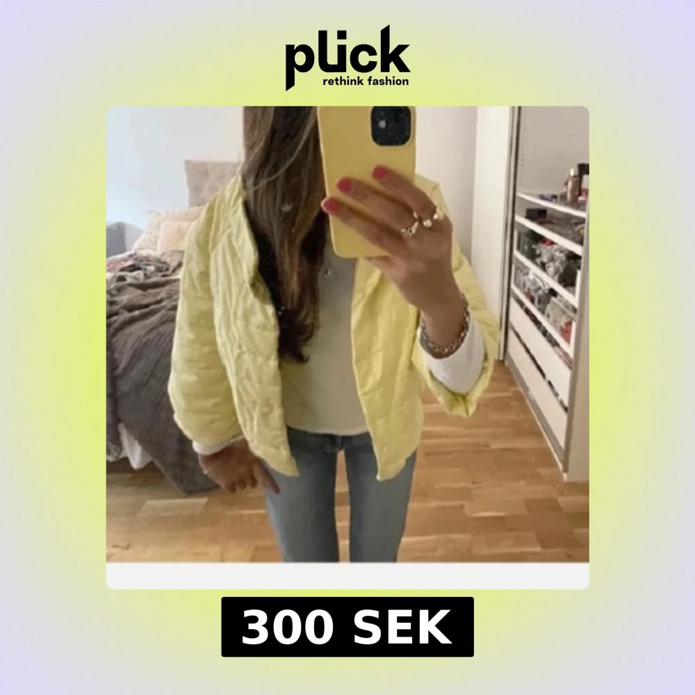Säljer en ljusgul quiltad pufferjacka med loose passform. Jackan har trekvartsärmar och är lätt vadderad, perfekt för vår eller kyliga sommarkvällar. Superfin att slänga över en t-shirt och jeans.🌼🌼