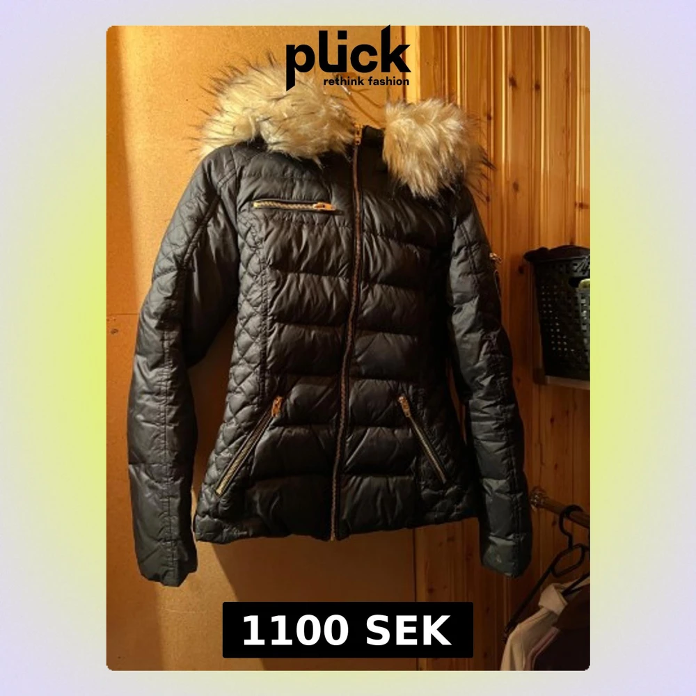 Säljer då den är lite för stor för mig och aldrig kommer till användning! Stl. 36 i fint skick! Svart/mörkblå med guldiga dragkedjor. Luvan är avtagbar och går att tvätta om man vill! Kostade 2995kr när jag köpte den ny!
