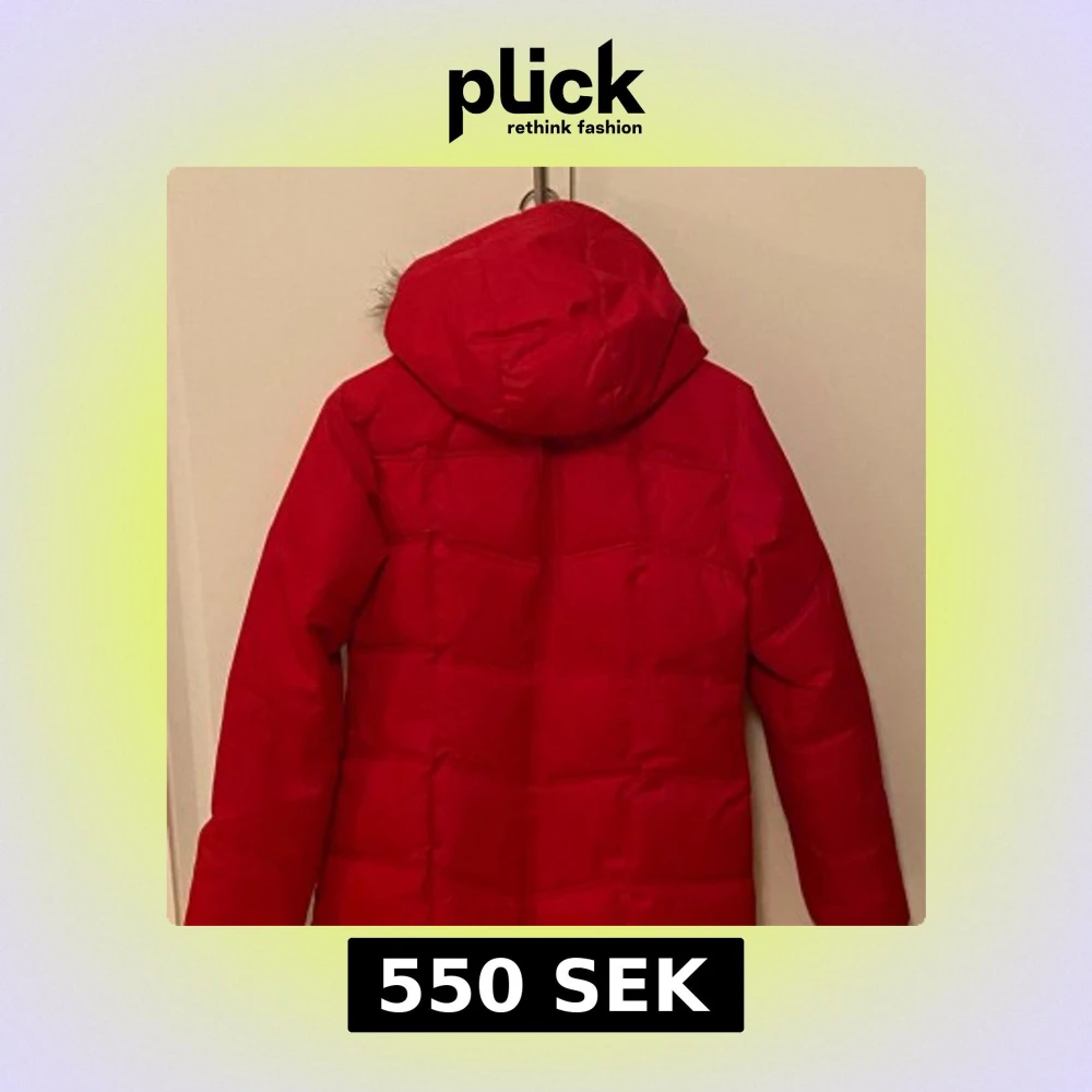 Säljer en snygg röd vinterjacka från Etirel med pälskantad huva. Jackan har en dragkedja framtill och har praktiska fickor både på sidorna av jackan och innetill . Perfekt för kalla dagar.