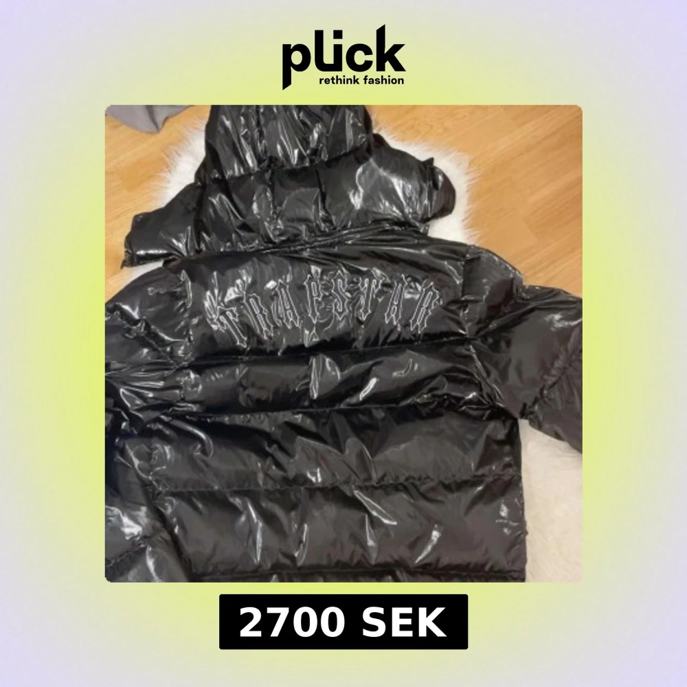Snygg svart pufferjacka från Trapstar med glansig finish och broderad logga på ryggen. Jackan har en hög krage och dragkedja framtill. Perfekt för kyliga dagar.