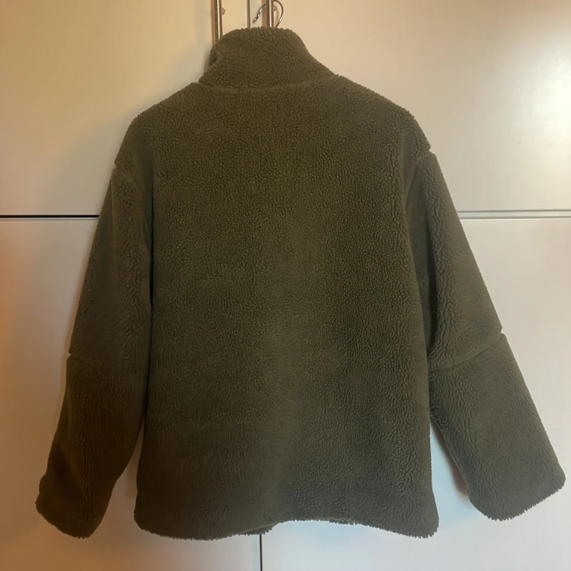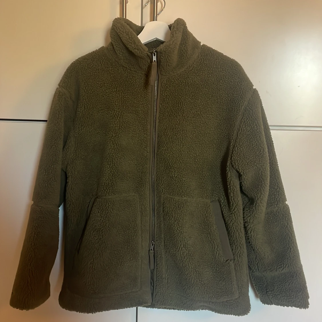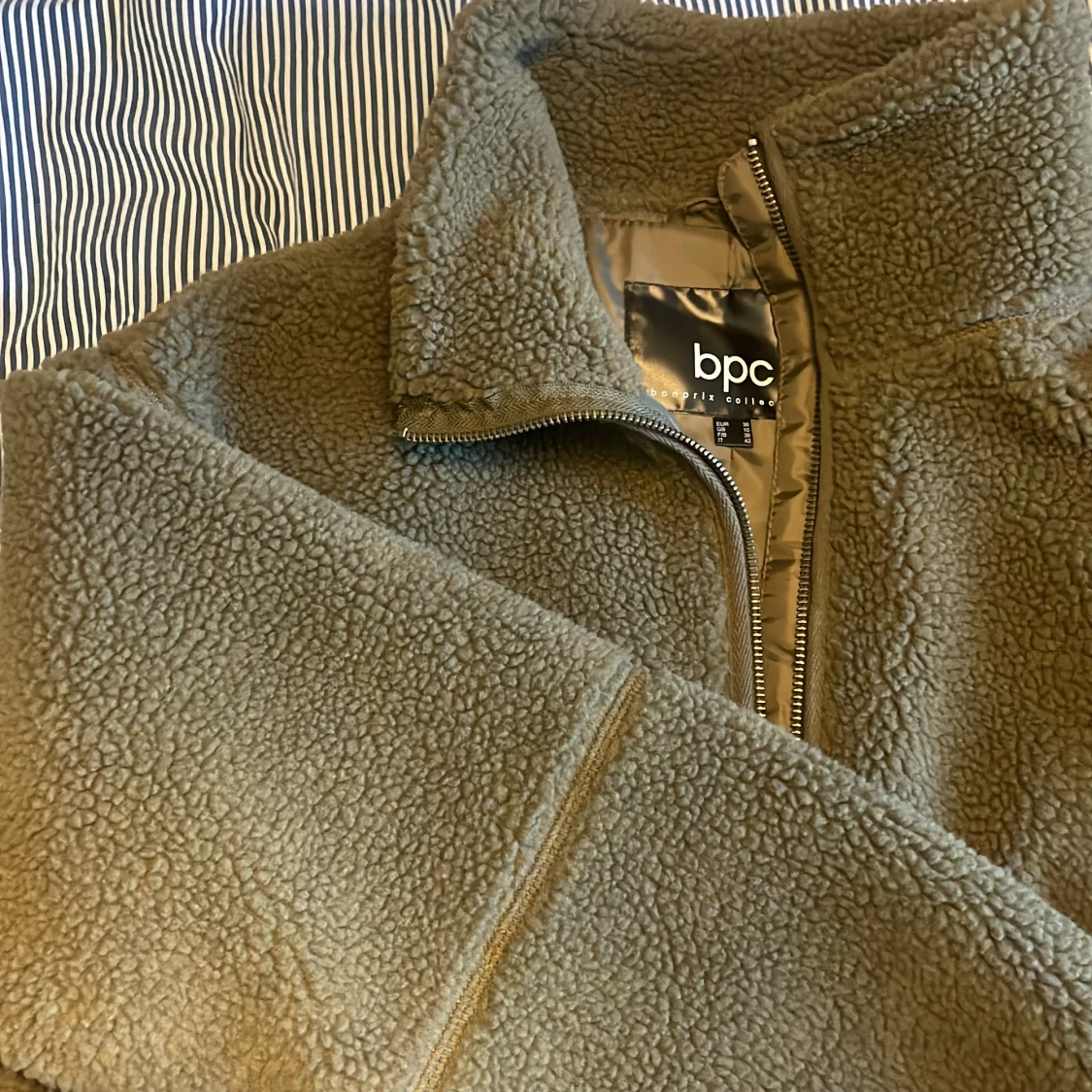Mysig olivgrön teddyjacka från bpc (bonprix collection). Jackan har hög krage, två stora fickor framtill och stängs med dragkedja. Oversized, avslappnad passform. Använd en gång.
