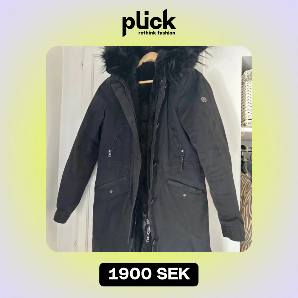 Säljer en snygg svart parkajacka från Blonde No.8 i storlek 36. Jackan har en mysig fuskpälsfodrad huva och dragkedja framtill. Perfekt för kalla vinterdagar! 🖤avtagbar päls