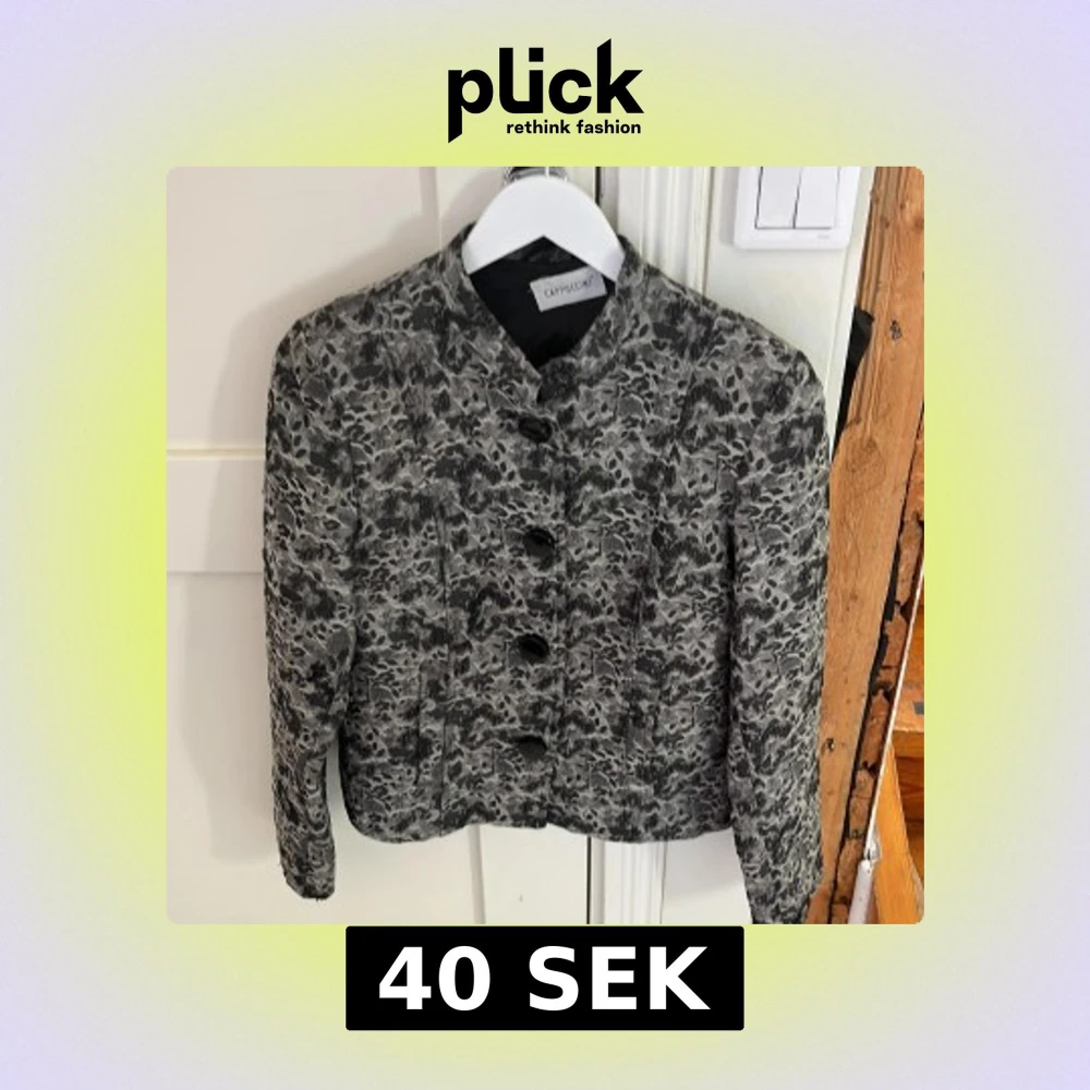 Säljer en unik kavaj från Cappuccini i storlek 36. Jackan har ett svart och grått mönster, raka axlar och stora knappar framtill. Den är figursydd med lång ärm och har en cool, lite lyxig känsla. Perfekt för dig som vill sticka ut med en statement piece. (Jackan har som ett par axelvaddar som säkert går att få bort)