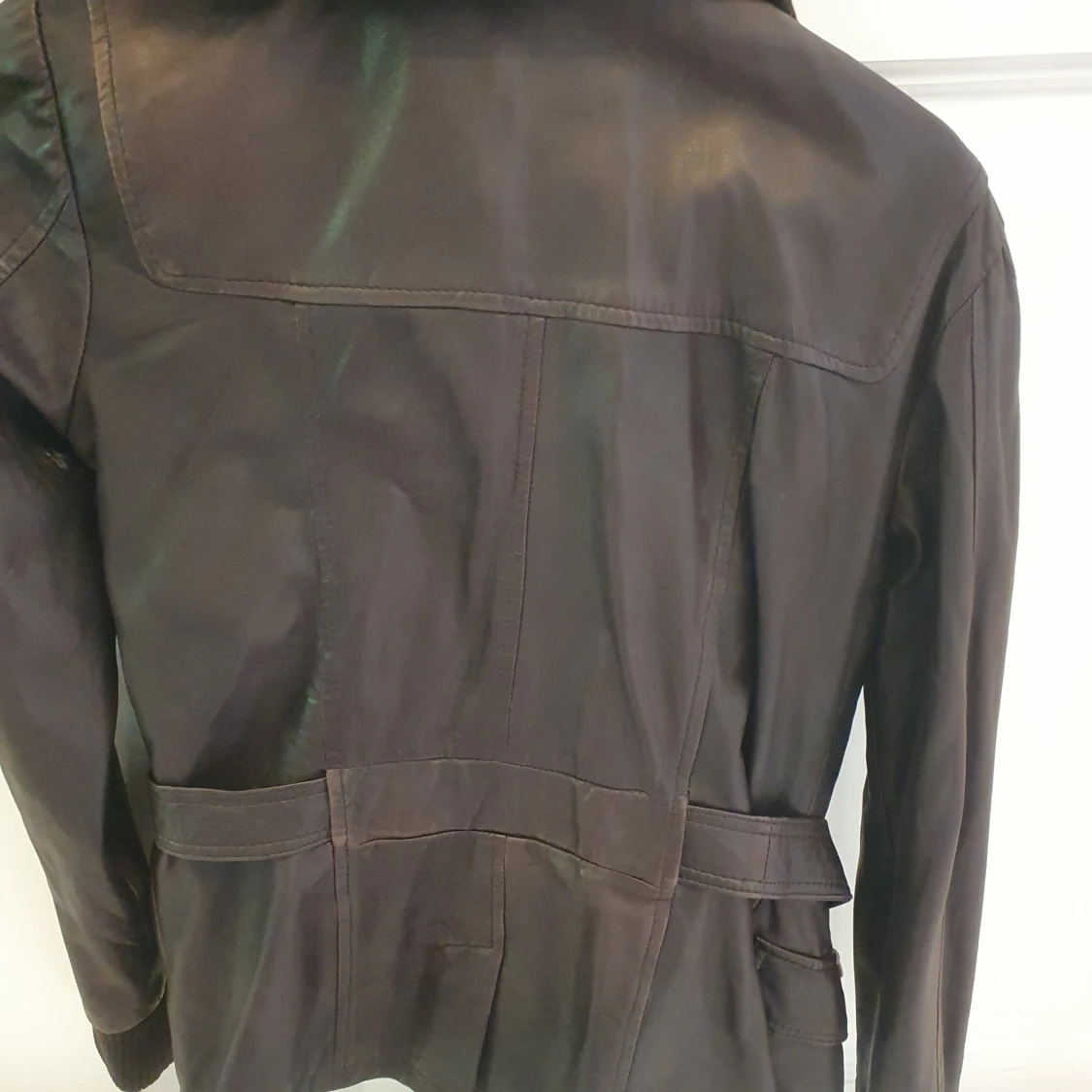 Snygg mörkbrun skinnjacka från Zoul med bälte i midjan och stora fickor framtill. Jackan har långa ärmar med ribbade muddar och coola sömdetaljer. Perfekt för dig som vill ha en klassisk men edgy look.