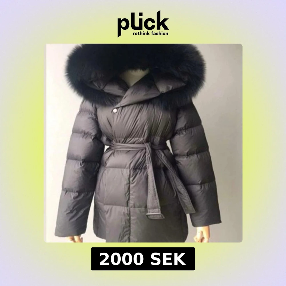 Säljer en svart pufferjacka med stor fluffig huva med ÄKTA RÄVPÄLS. Jackan har bälte i midjan för snygg passform och är quiltad för extra värme. Perfekt för kalla dagar och har långa ärmar. Stilren och trendig look. Korta modellen