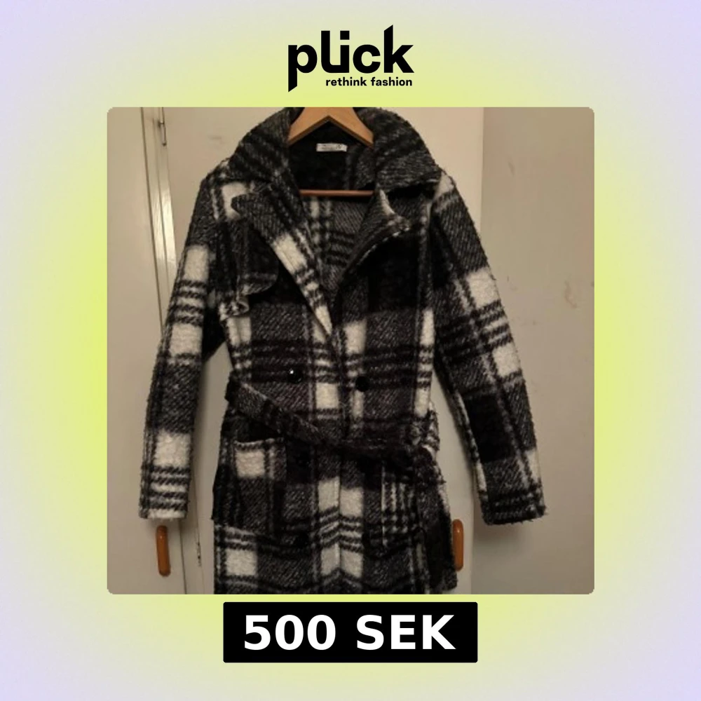 Snygg och stilren rutig kappa i svart och vitt från Designers. Den har ett bälte i midjan och långa ärmar. Perfekt för kyligare dagar.