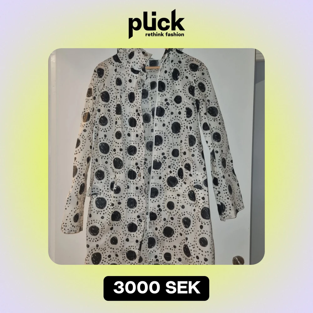 Säljer en superfin prickig regnjacka från Marimekko i storlek S. Den är vit med svarta prickar och har långa ärmar. Perfekt för regniga dagar och har en stilren design. Jackan är i oanvänt skick och redo för nya äventyr! 🌧️