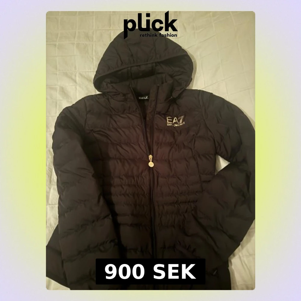 Svart pufferjacka från Emporio Armani EA7 med huva och guldfärgad logga på bröstet. Jackan har quiltad design, dragkedja med EA7-detalj och är perfekt för kyliga dagar. Snygg och stilren modell som håller dig varm.