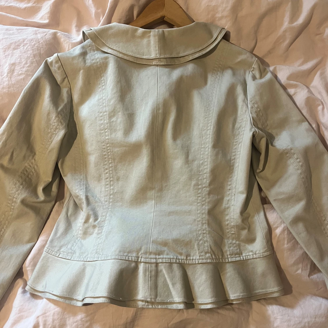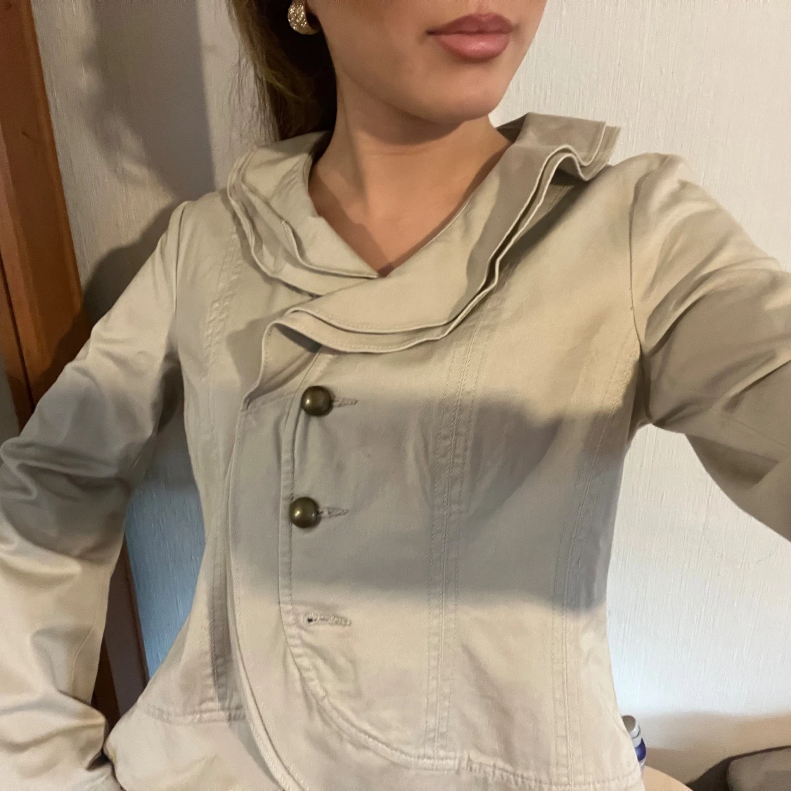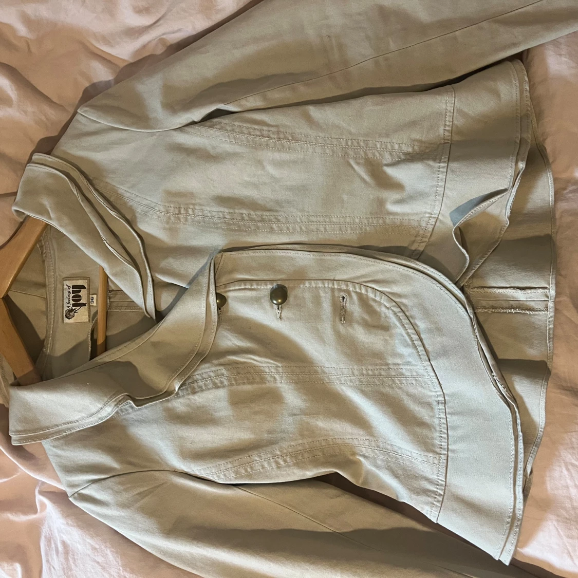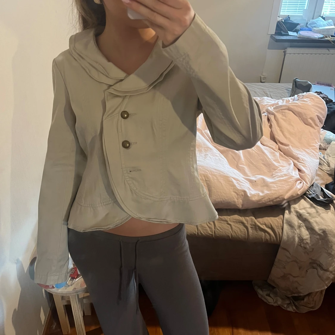 Säljer en skitsnygg beige kappa/jacka perfekt till hösten och våren. Som man ser på bilderna så saknas det tyvärr en knapp längst ner. Strl 36/s men passar även 34/xs.