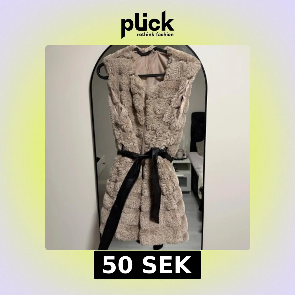 Beige pälsväst med bälte