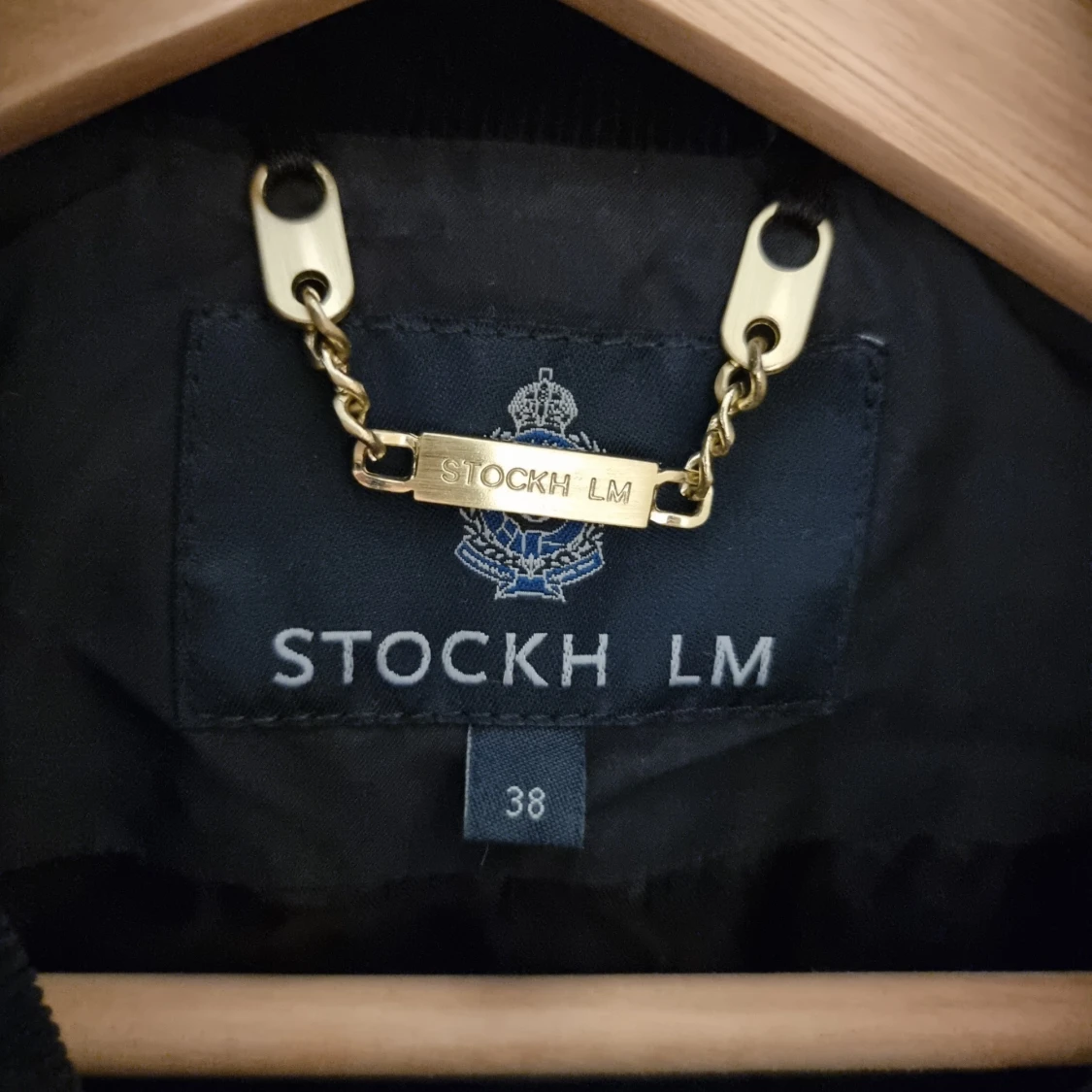 Snygg svart quiltad jacka från Stockh LM med guldknappar och dragkedjor. Jackan har en hög krage och praktiska fickor framtill. Perfekt för kyligare dagar med sin stilrena design.
